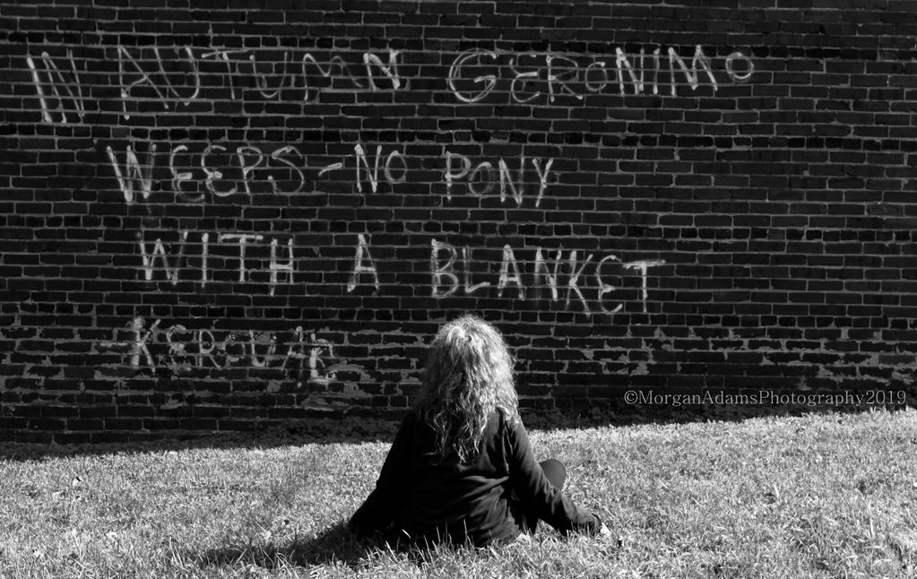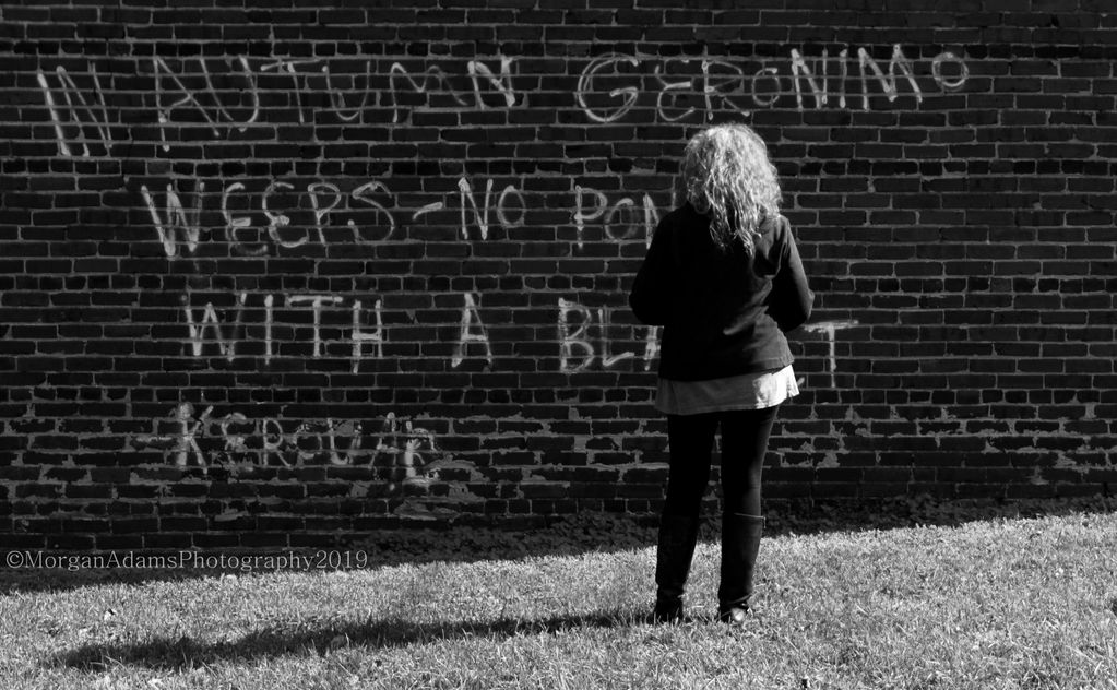 Spray-painted on the side of this abandoned building in Adams, Tenn, is a haiku by American-French novelist and poet, Jack Kerouac. Years ago it was painted by a young man who loved poetry, art, and loved to climb trees. He lived in Adams with his mother, Sarah, and he tragically died shortly after leaving these words here. She read this a